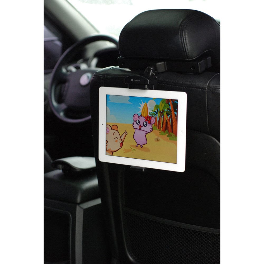 EXOGEAR offers an easy and secure way to turn your tablet into a backseat entertainment system. The ExoMount Tablet HRM is universally-designed in two ways for fitting most car seat headrest types plus a variety of tablets from 7" up to 10.1" in size, while built-in vertical position adjustment and double ball joint features allow you to achieve optimal viewing positions for passengers of all ages.
