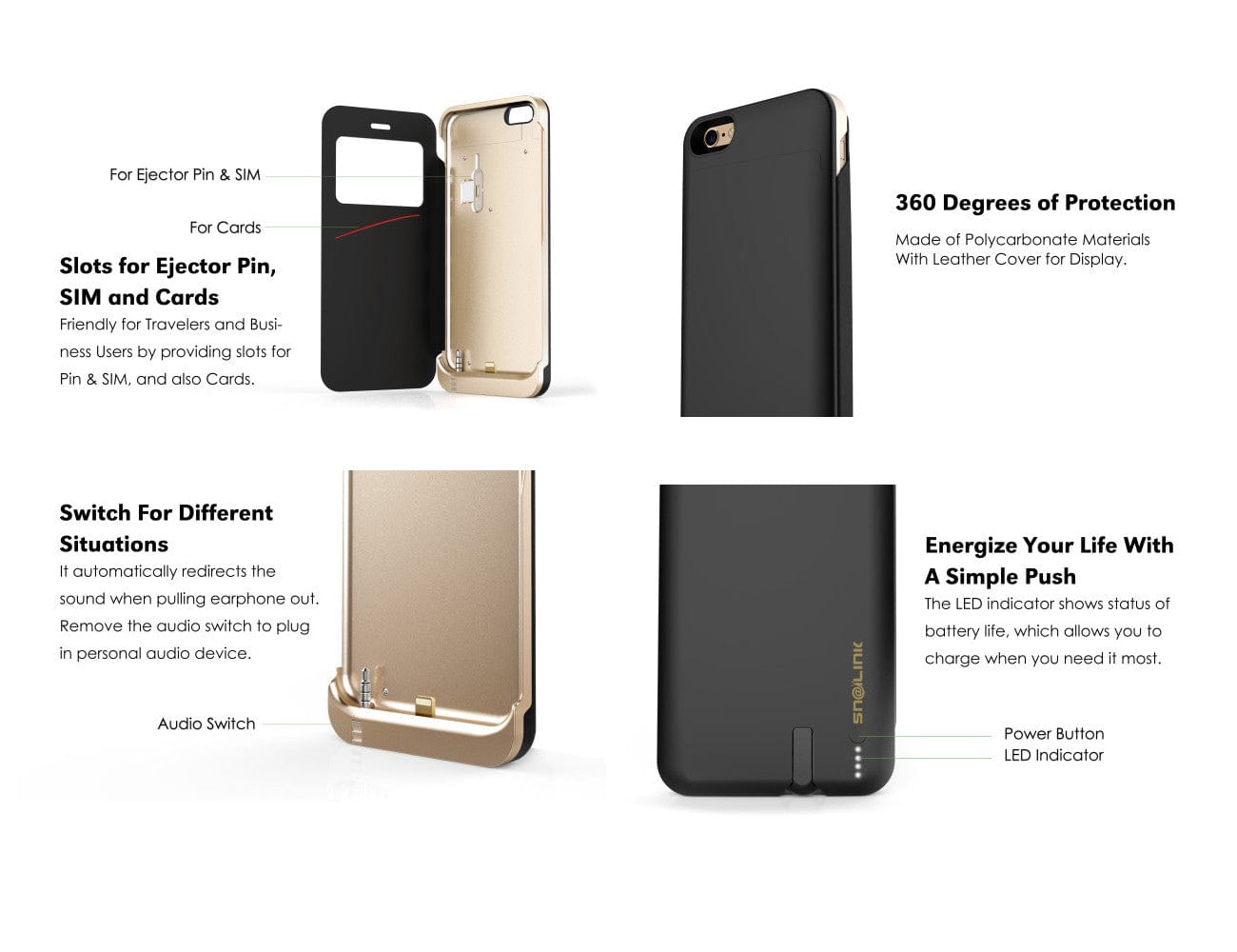 Snailink RAPPCase Battery Shell Case for Apple iPhone 6/6S/Plus w/ Retractable Earphones